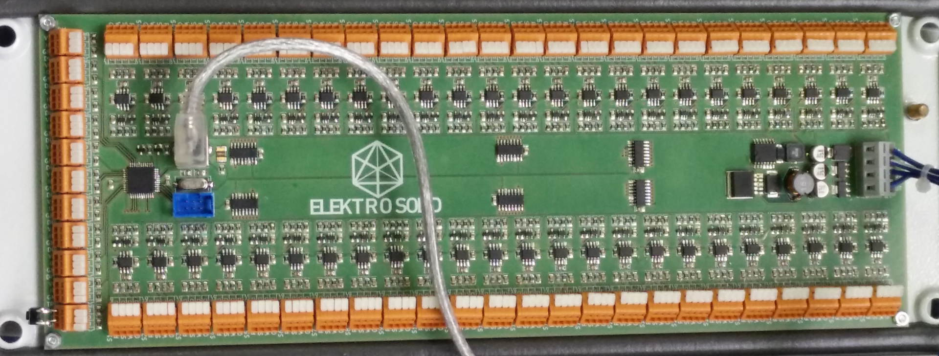 Zunächst wurde eine Messkarte entwickelt, die sowohl direkt die 0..8mV-Signale als auch die 24V-Signale der Initiatoren auswerten kann und diese dann auf digitalem Wege überträgt. Statt einer Messkarte, an die dann das jeweils verwendete Werkzeug angeschlossen wird bot es sich vielmehr an jedes Werkzeug mit einer eigenen Messkarte zu versehen. Dies hat insbesondere zwei Vorteile: Zum einen werden so die Störeinflüsse minimiert, da die Leitungen kurz und geordnet auf die Messkarte geführt werden. Zum anderen lassen sich so die Messwerte mit nur sehr wenigen Signalleitungen zu PC übertragen, was den Verkabelungsaufwand enorm erleichtert. Für diese Aufgabe wurden die Messkarten mit einer USB-Schnittstelle versehen um sie einfach mit dem PC zu verbinden.