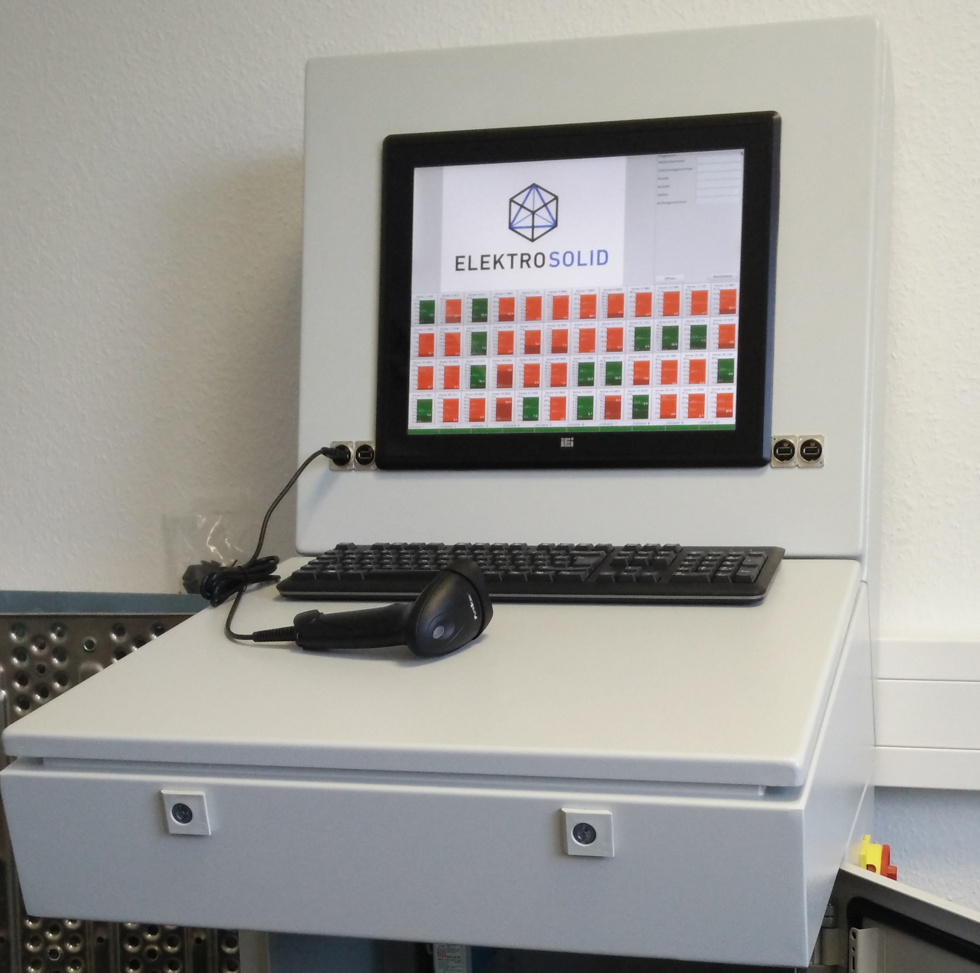 Der Panel-PC welcher die Visualisierung und die Datenbank beherbergt wurde in ein mobiles Terminalgehäuse eingebaut. Durch den Einsatz robuster Harting-Stecker ist ein schnelles An- und Abklemmen der Werkzeuge gewährleistet. Um dem Werker das Ausfüllen des Fertigungsprotokolls zu erleichtern, wurde das System mit einem Strichcodescanner ausgestattet.