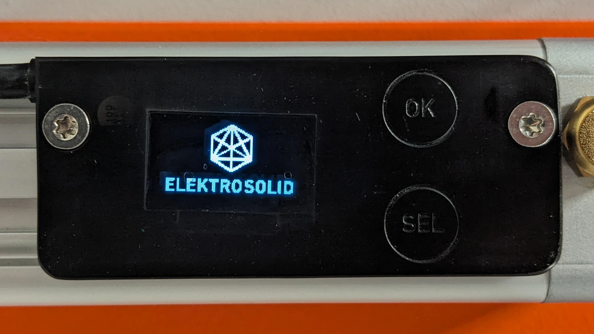 Der Sensor selbst wurde ebenfalls möglichst klein aufgebaut und ist mit einem 40cm langen Kabel am Auswertemodul mit LCD-Display angeschlossen. Dieses wird per 5-poligen M12 Stecker an das übergeordnete System angebunden. Die Belegung lautet dabei wie folgt: